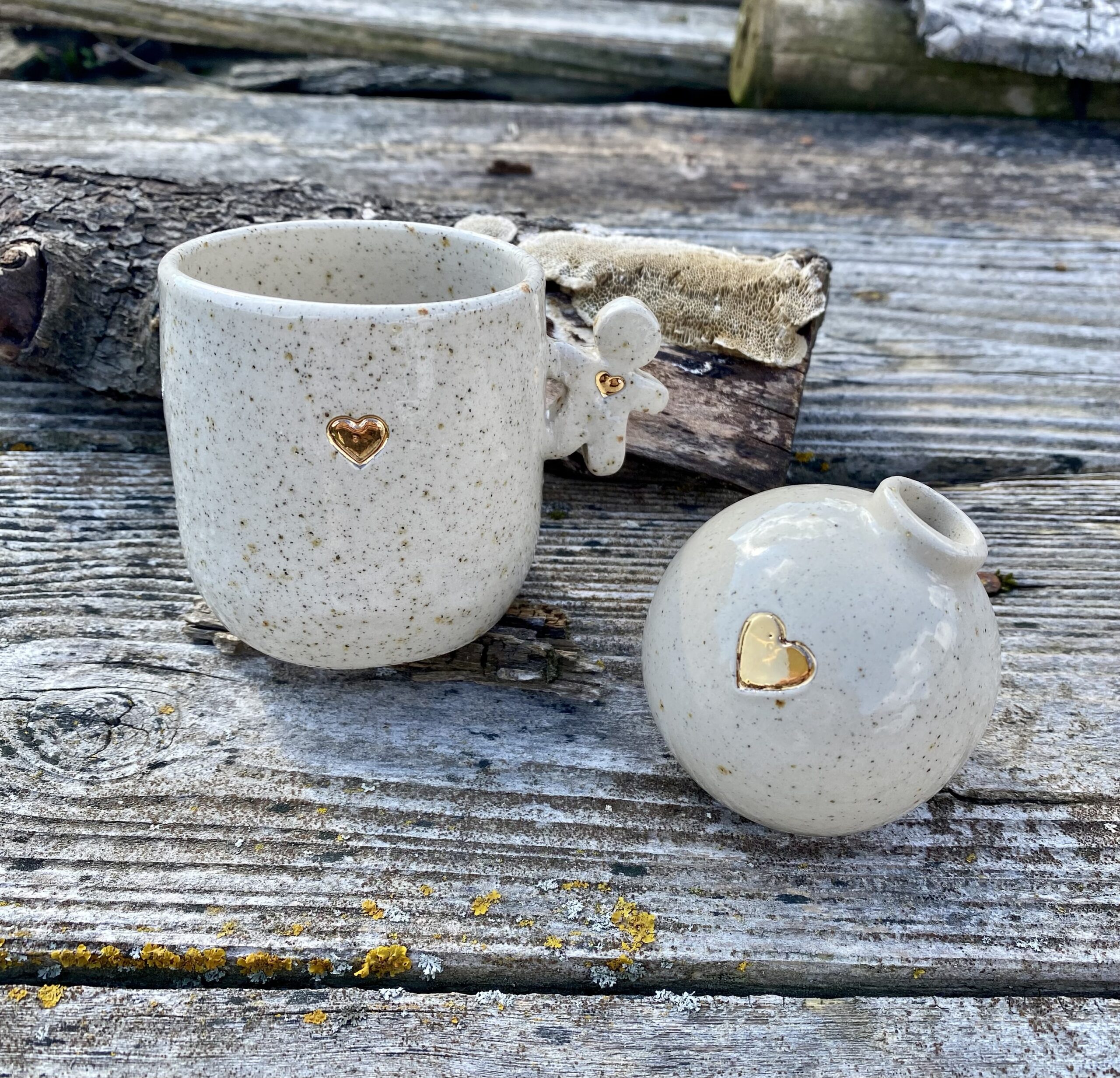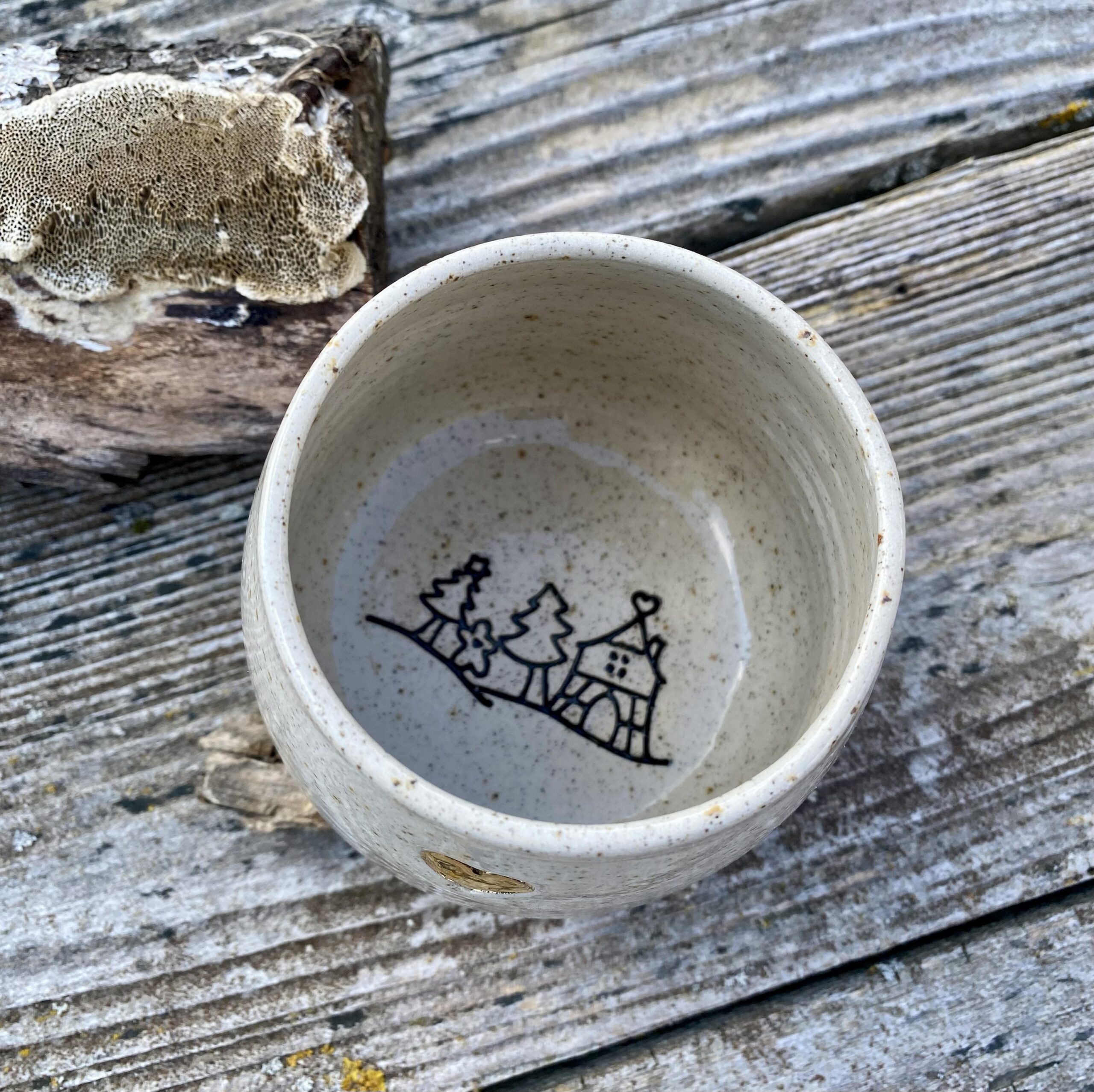 23 : Tasse au cœur d’or avec dessin du village au fond