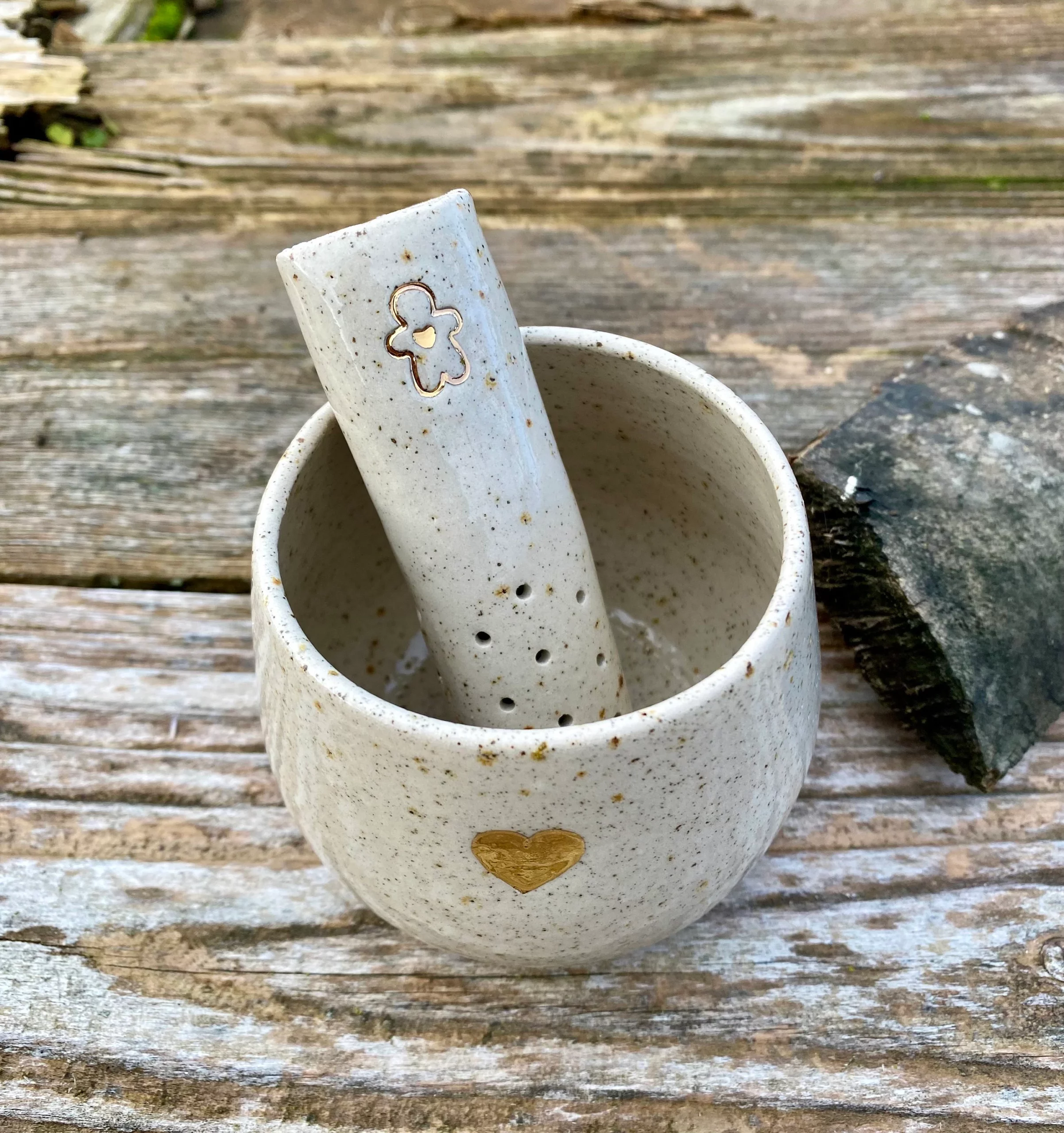 Infuseur à thé ou tisane en céramique au manele cœur d’or