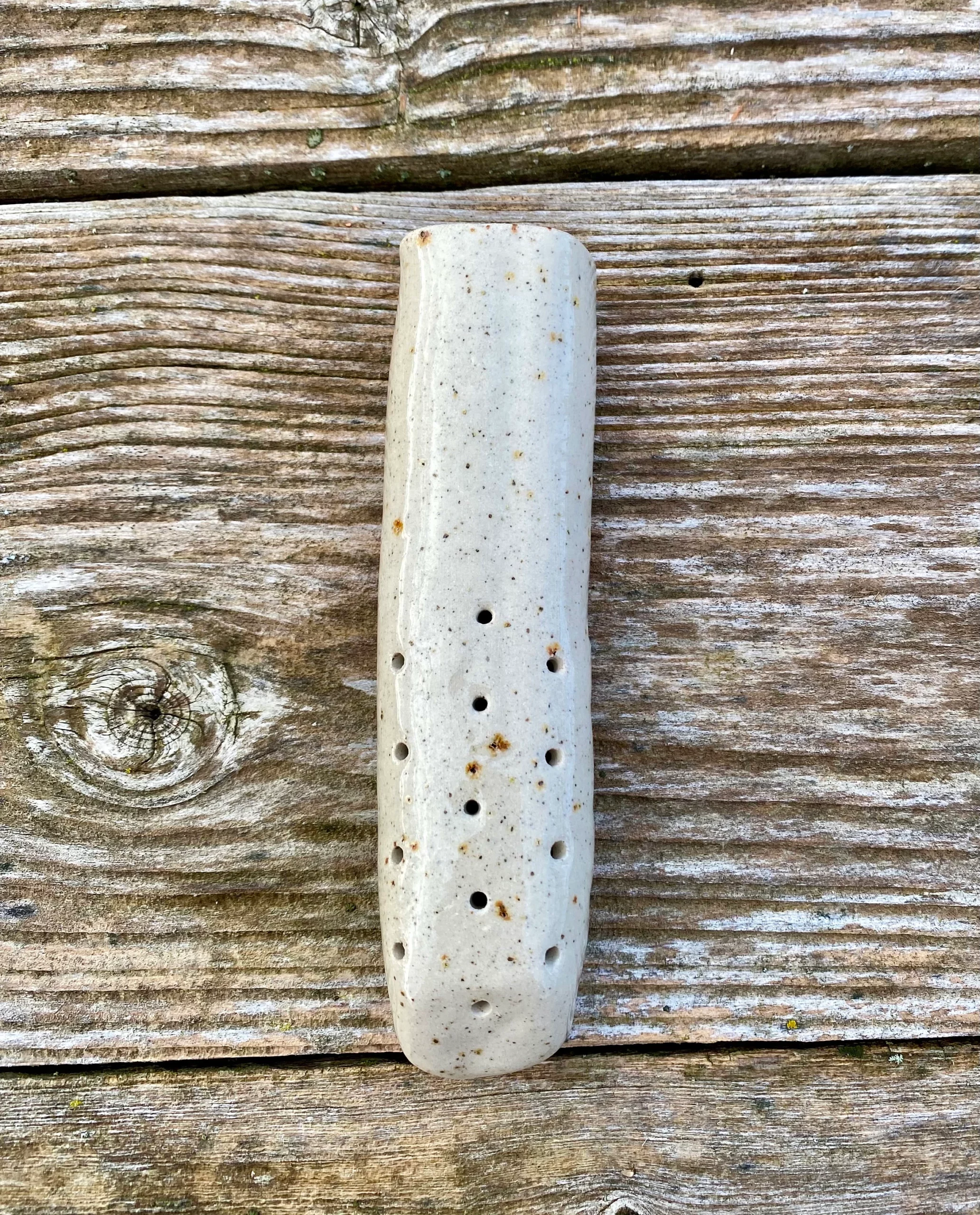 Voici ses dimensions approximatives (le travail artisanal de la terre peut les faire varier légèrement) : il mesure environ 11cm de long, 2,5 cm d’épaisseur et 3cm de large.
