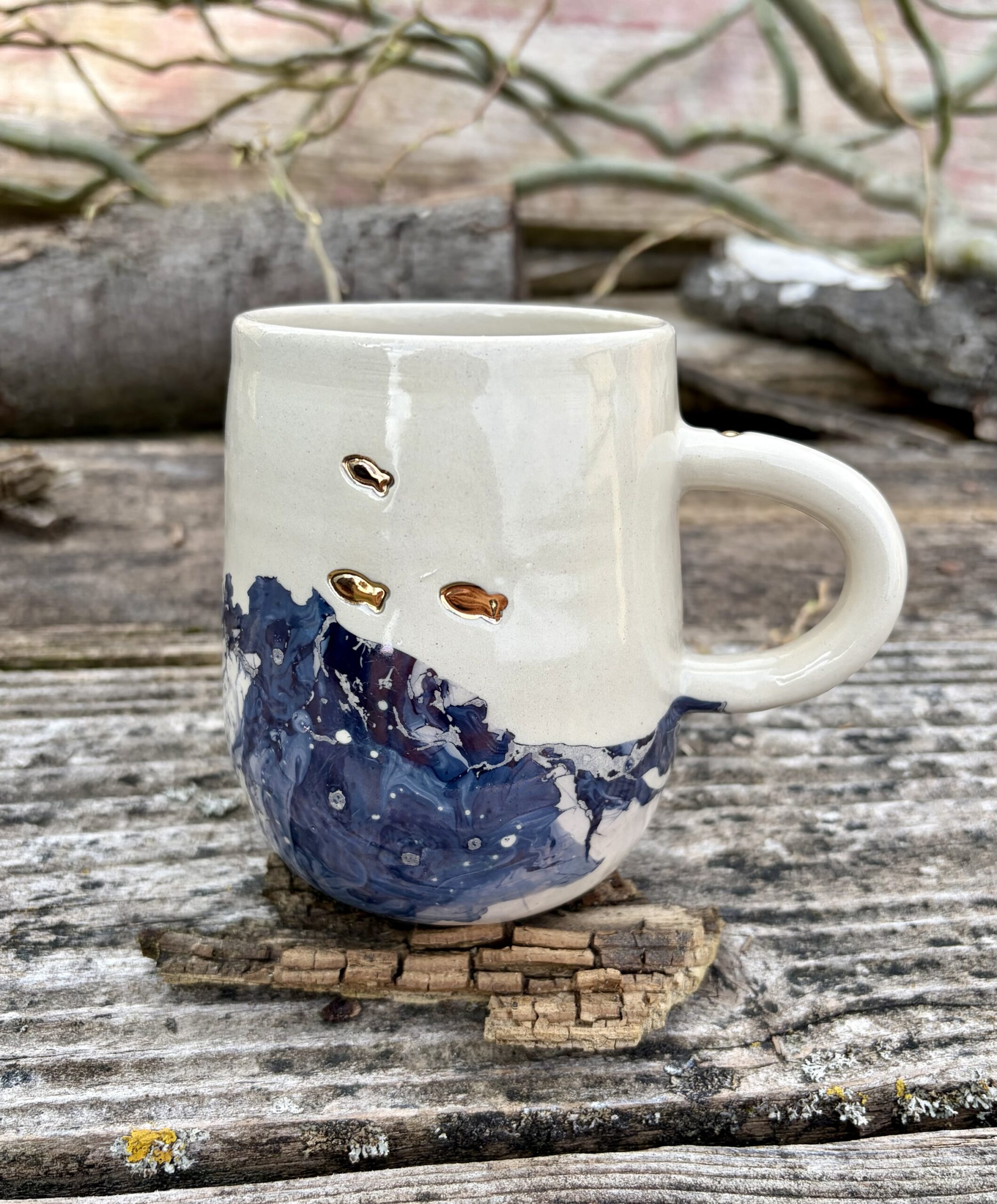 Mug poissons. Ce modèle est unique, la technique de réalisation que j’utilise crée des surprises 🐟😊